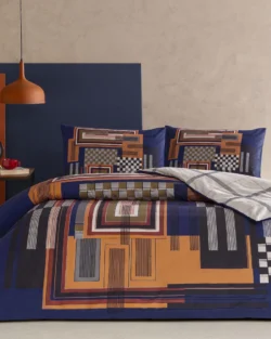 Додайте дитячій кімнаті сучасного стилю з комплектом постелі TAC Ravix Blue! Динамічний абстрактно-геометричний принт у насиченій синьо-помаранчевій гамі виглядає дуже модно та енергійно. Комплект виготовлено з якісного ранфорсу (100% бавовна) та має зручне простирадло на резинці.