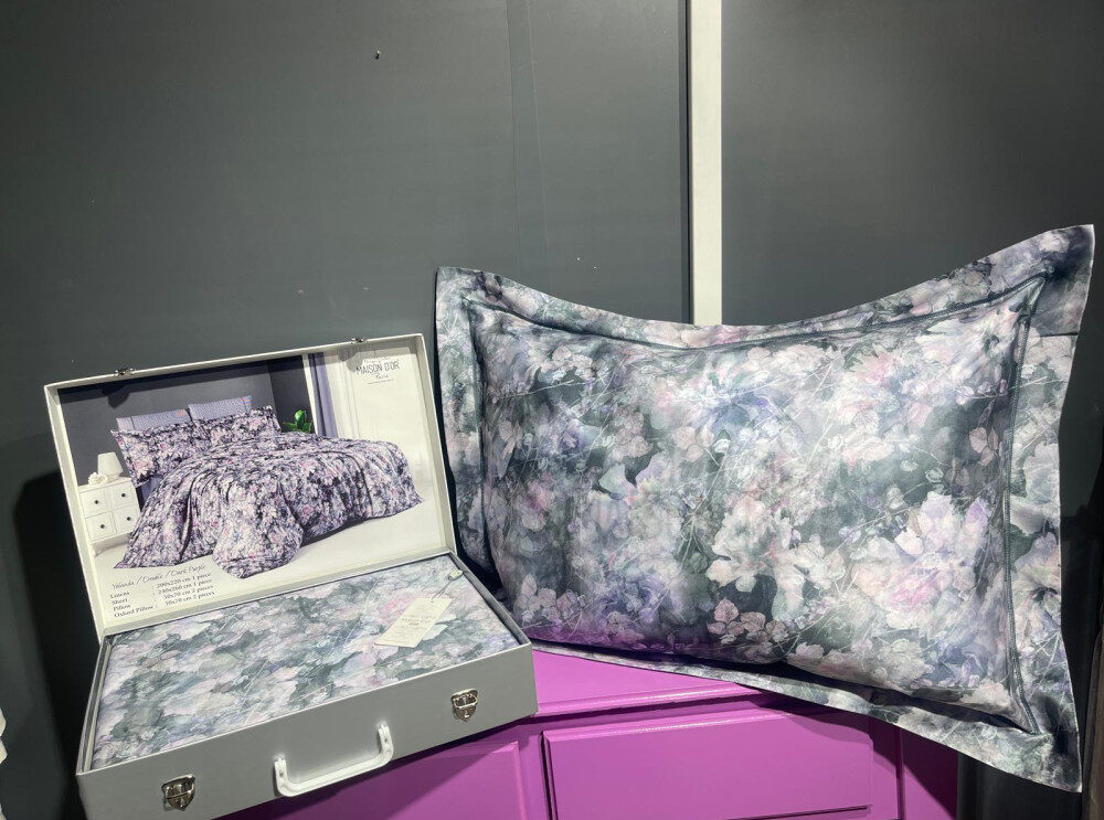 Преміальний тенсель Maison D’or Lily Grey — м’який, дихаючий та елегантний комплект євро розміру з 4 наволочками та стильним флористичним дизайном.